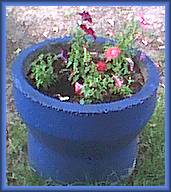 Überall stehen Blumenkübel, die wir ganz bunt angemalt haben.